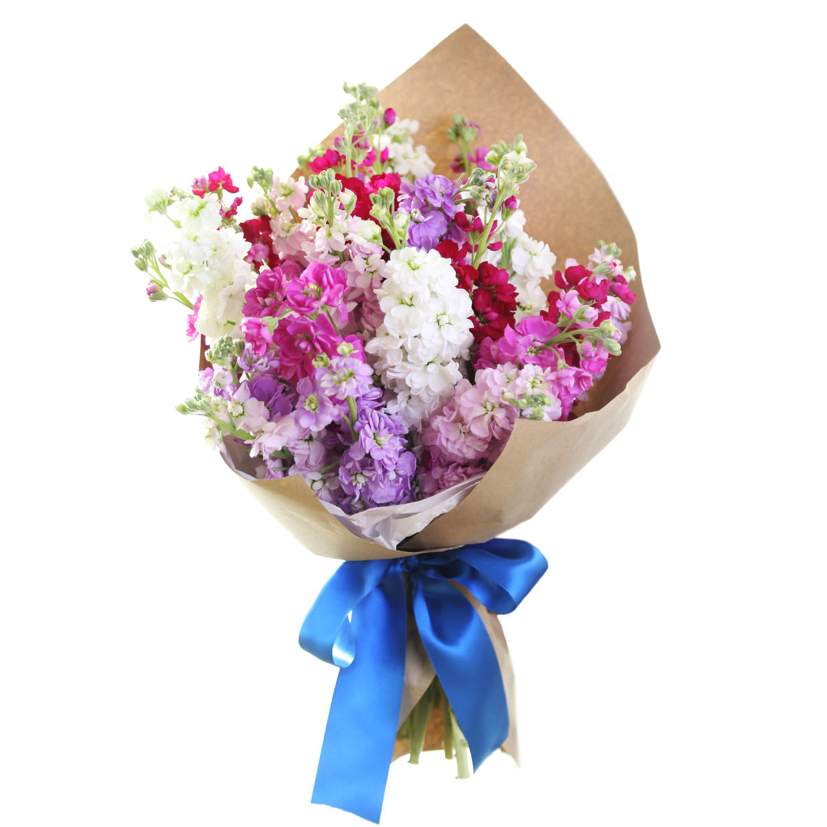Маттиола розовая, белая, красная, фиолетовая. Упаковка (лента, пленка, крафт, сетка, пленка матовая)