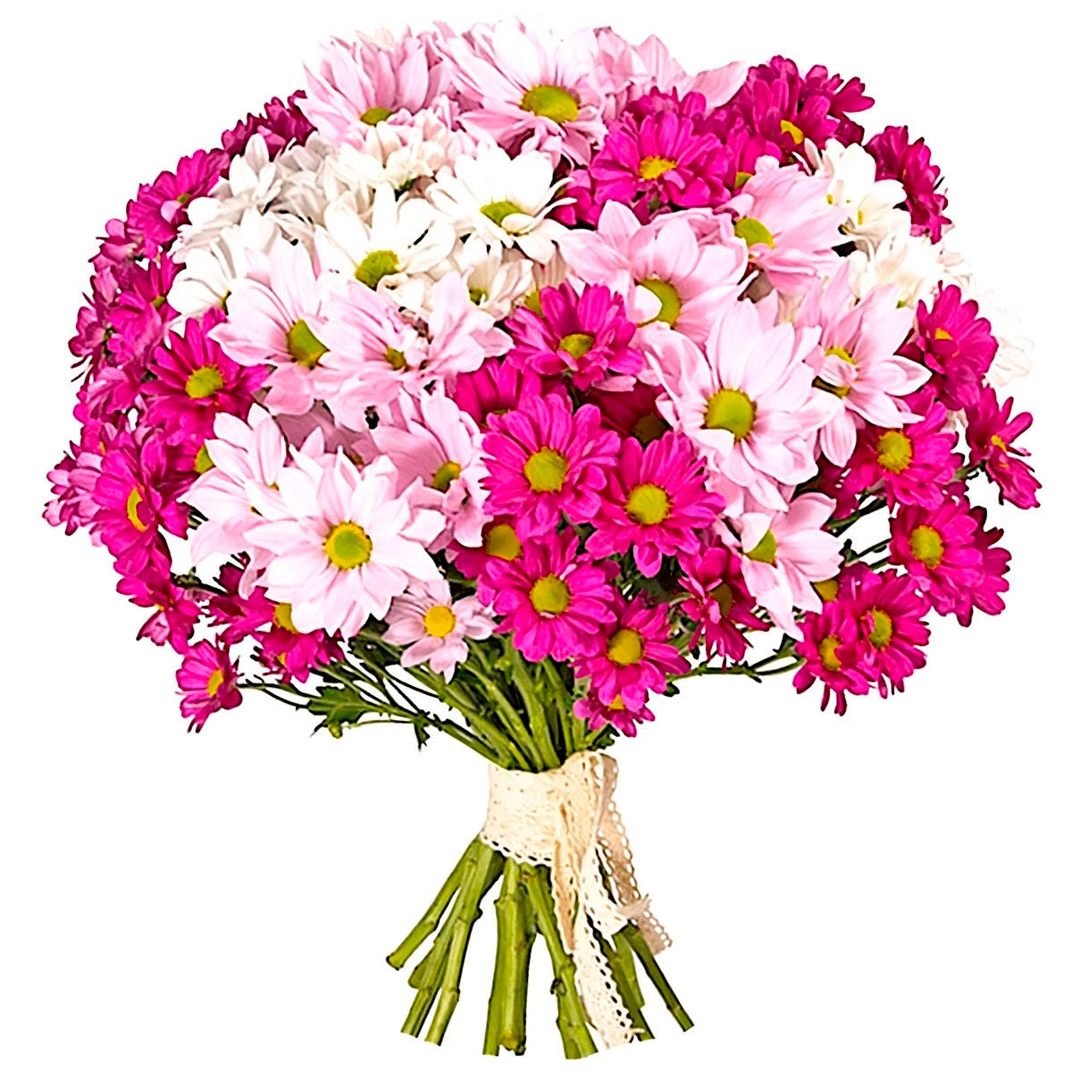 Хризантемы кустовые розовые, белые, светло-розовые.