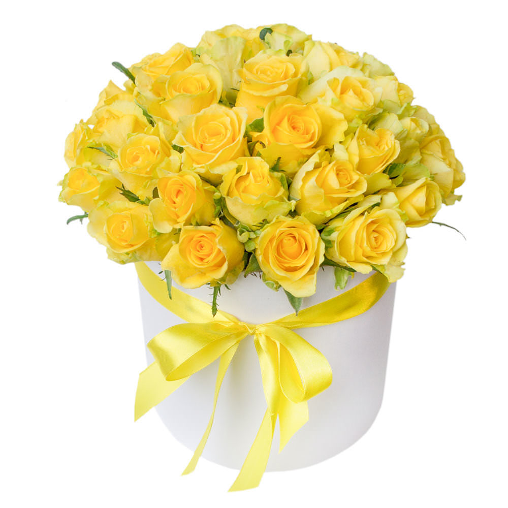Цветы в коробке «Желтые Розы» с доставкой по г Зерноград: вы можете заказать букет в цветочном супермаркете «Флормания» по цене от 2799 руб.