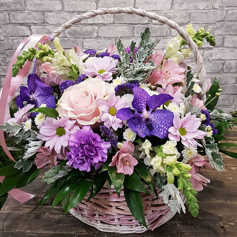 Цветы в корзинке «Колокольчик» с доставкой по г Зерноград: вы можете заказать букет в цветочном интернет-магазине «Флормания» по цене от 3499 руб.