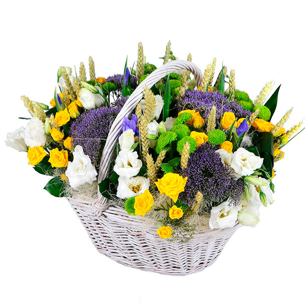 Цветы в корзинке «Летняя лужайка» с доставкой по г Зерноград: вы можете купить букет в интернет-магазине цветов «Флормания» по цене от 3499 руб.